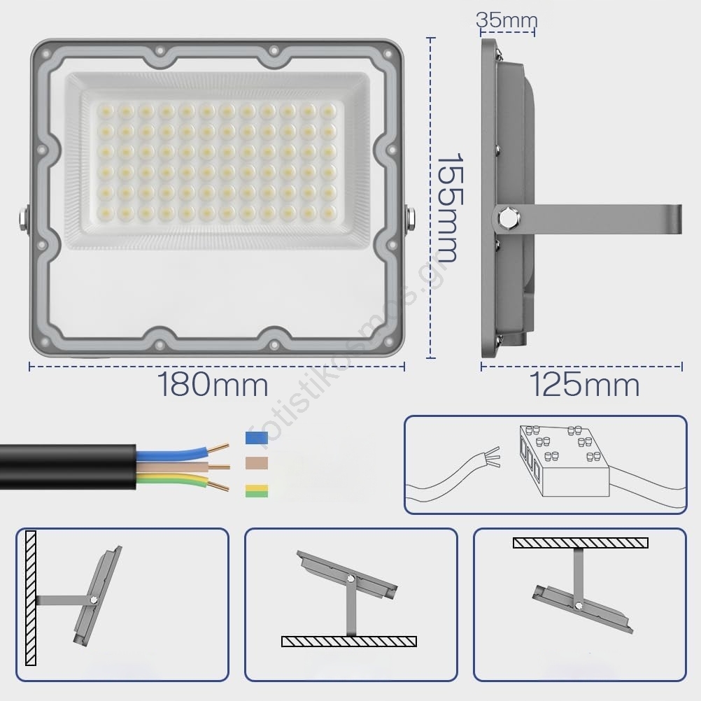 LED Εξωτερικός προβολέας LED/50W/230V 4500K IP65 γκρι