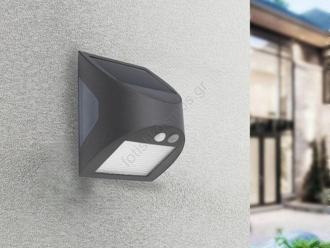 LED ηλιακό επιτοίχιο φωτιστικό με ενσωματωμένο αισθητήρα, LED/3W/3,7V 1200 mAh, IP54, ανθρακί | Foti