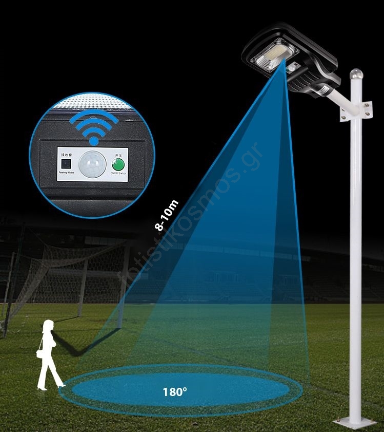 LED Ηλιακό φωτιστικό κήπου με αισθητήρα LED/60W/6V 6500K IP65 + τηλεχειριστήριο | Fotisti kosmos