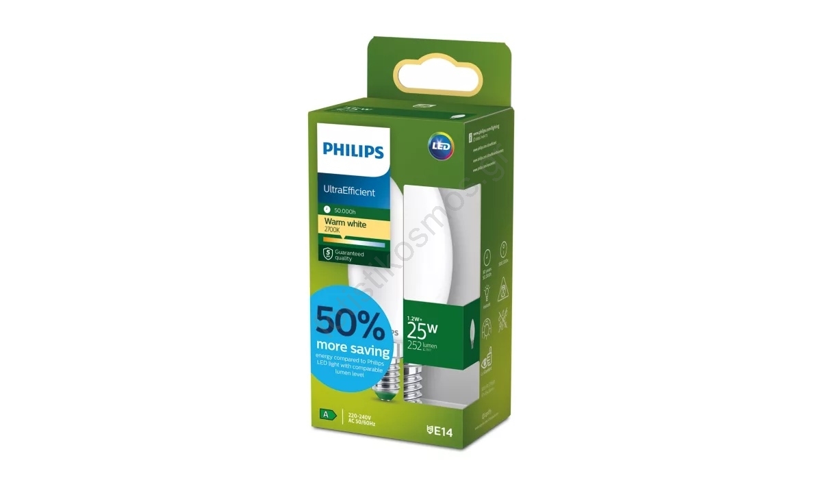 • LED λαμπτήρας ULTRAEFFICIENT Philips B35 E14/1,2W/230V 2700K