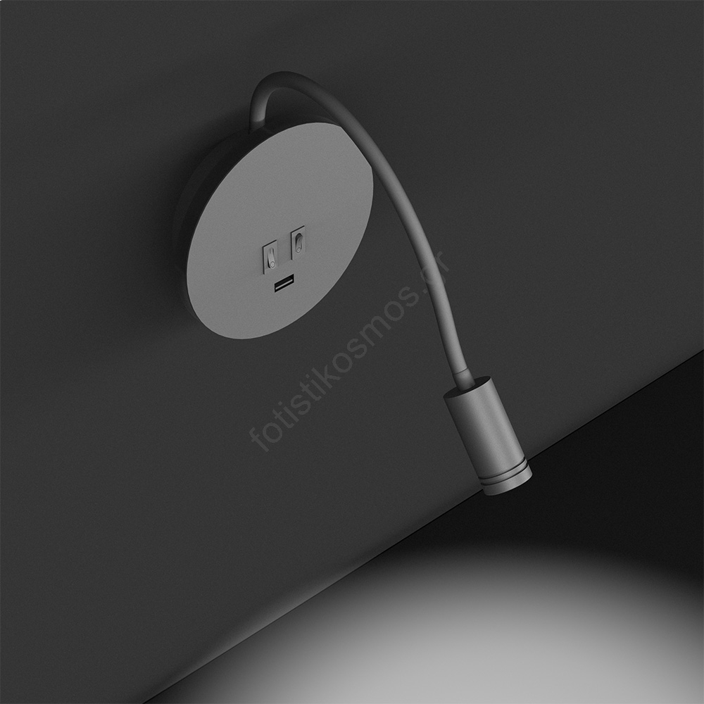 Ευέλικτο LED φωτιστικό τοίχου με USB BASE 1xLED/8W+1xLED/2W/230V λευκό/ασημί | Fotisti kosmos