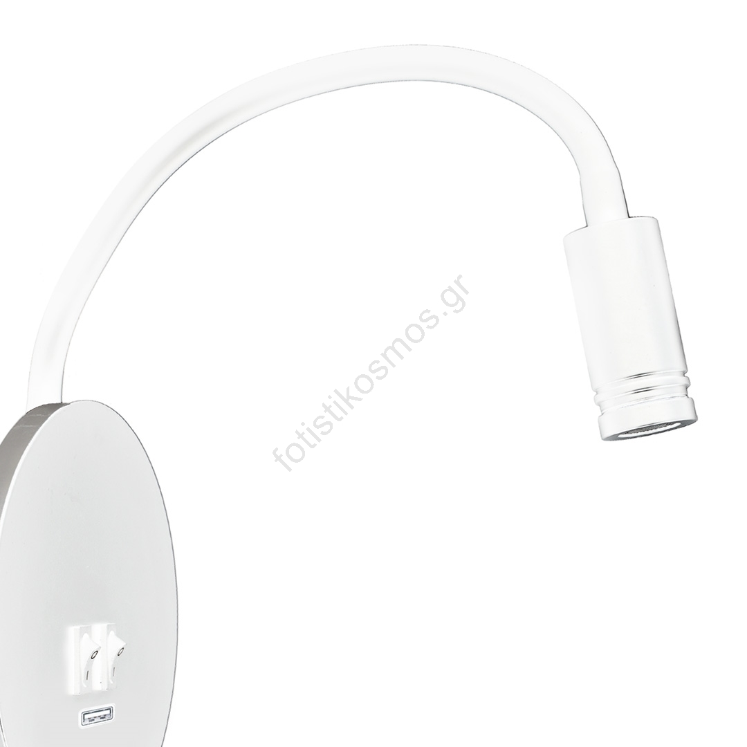 • Επιτοίχιο φωτιστικό LED με ευλύγιστο βραχίονα και θύρα USB, BASE LED/8W + LED/2W/230V, λευκό