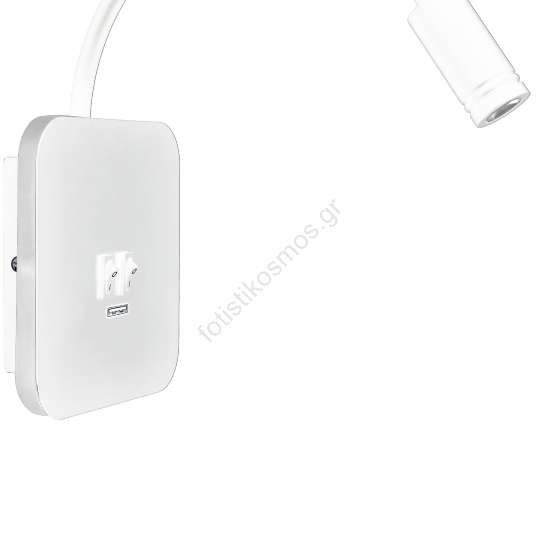 • Επιτοίχιο φωτιστικό LED με ευλύγιστο βραχίονα και θύρα USB, BASE LED/8W + LED/2W/230V, λευκό