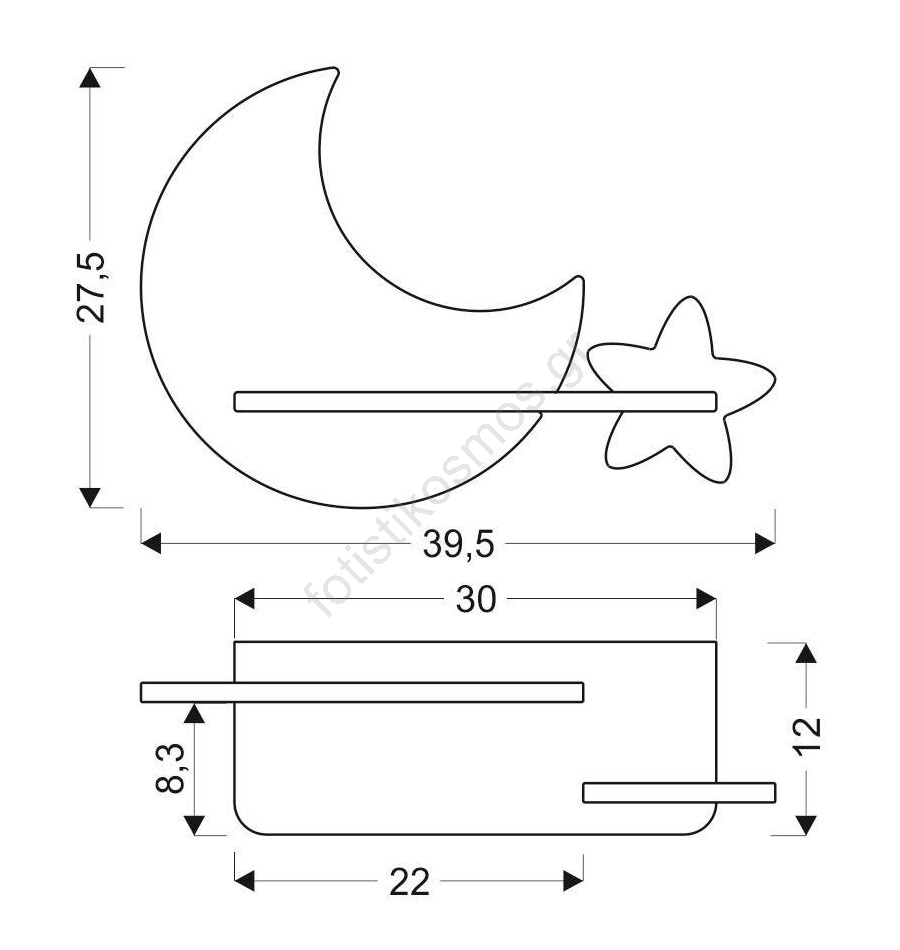 Παιδικό LED φωτιστικό τοίχου με ράφι MOON LED/5W/230V | Fotisti kosmos
