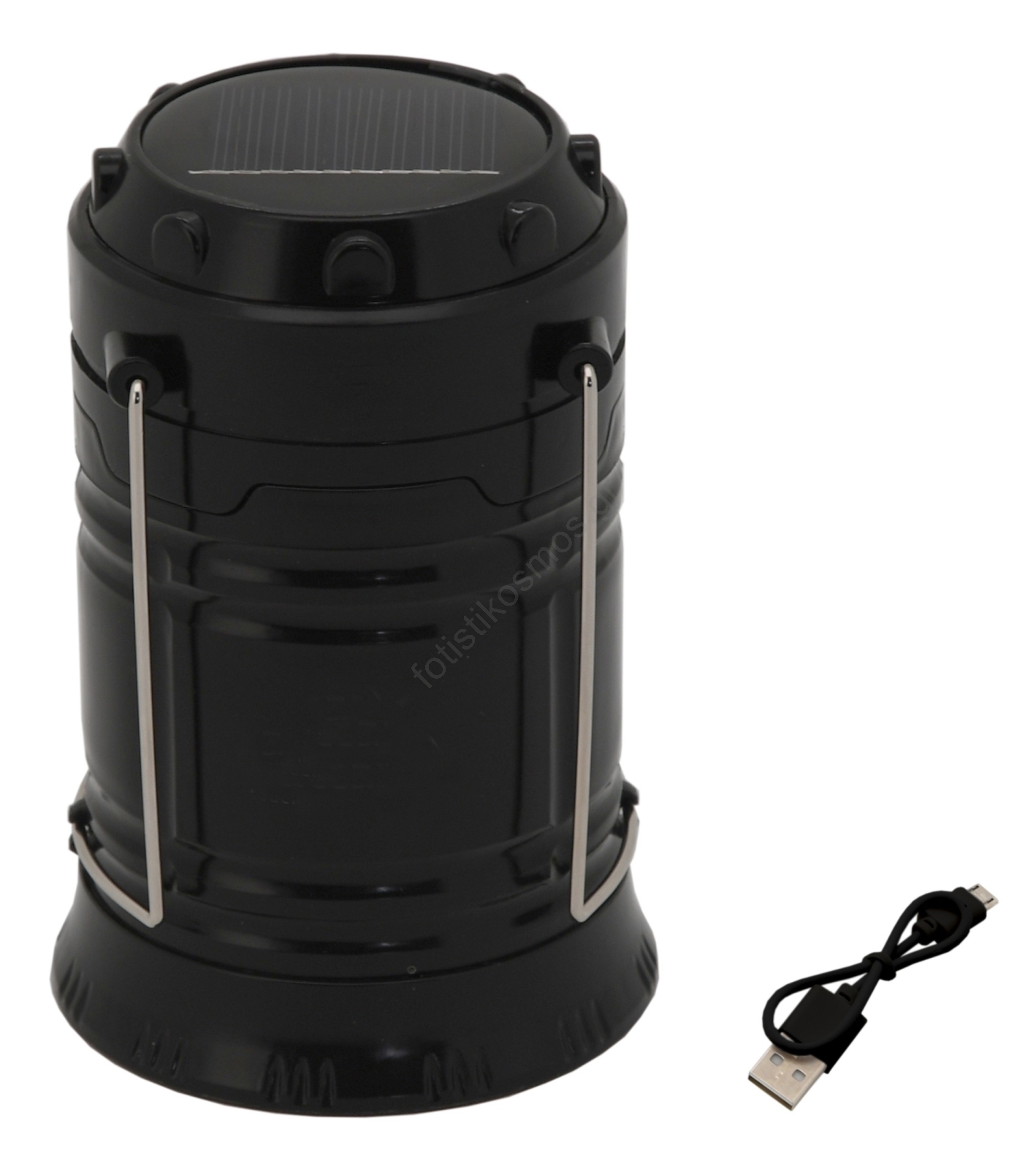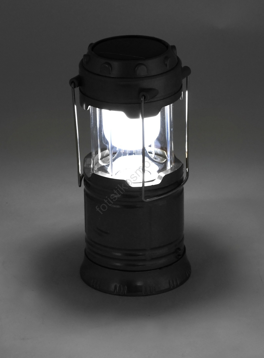 • Φωτιστικό LED κατασκήνωσης με αναδιπλούμενο σώμα, εξοπλισμένο με μπαταρία Li-Ion και ηλιακό πάνελ.