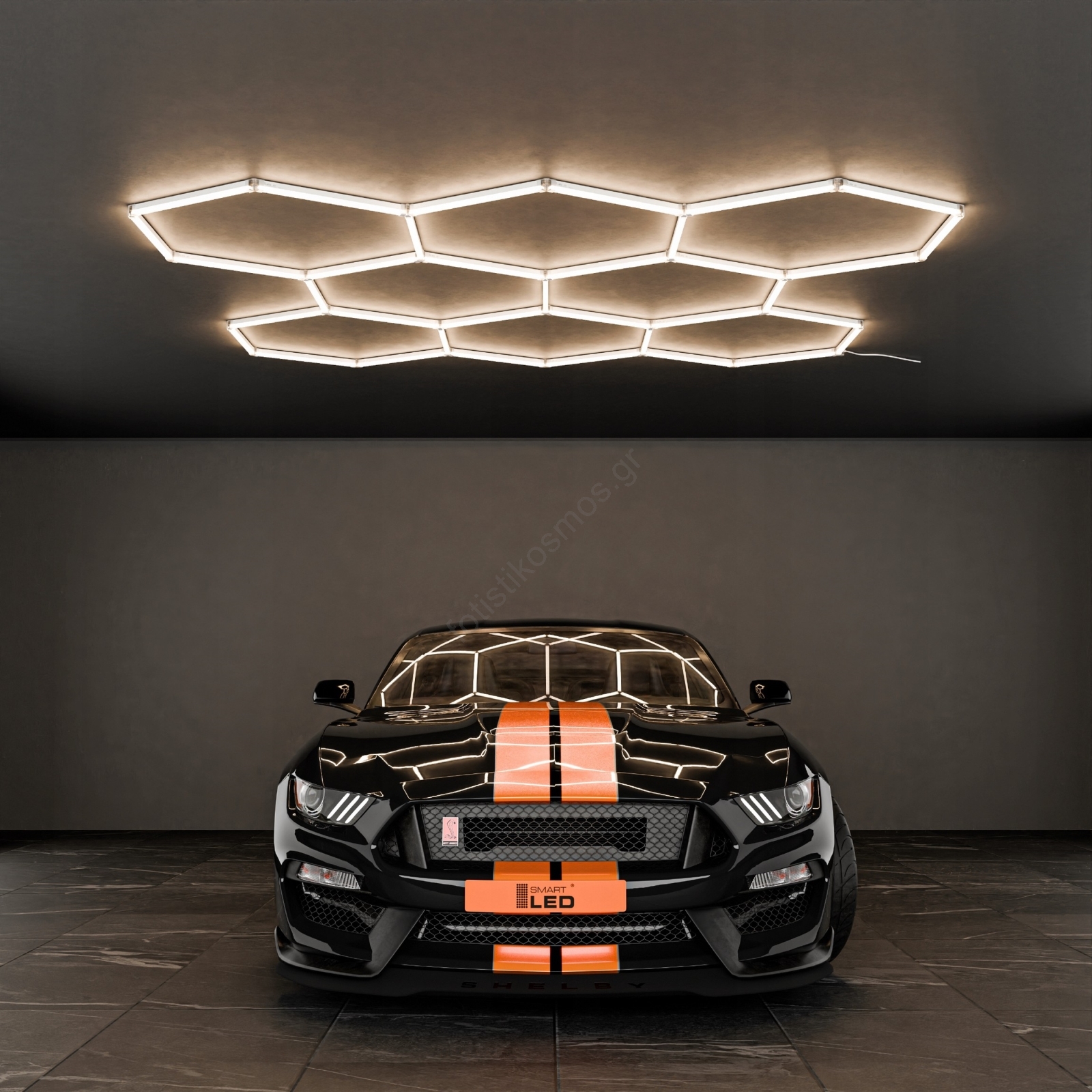 • Χάρη στην εξαγωνική δομή, ο φωτισμός λειτουργεί τόσο ως αισθητικό στοιχείο όσο και ως αποτελεσματικό φωτιστικό σύστημα.