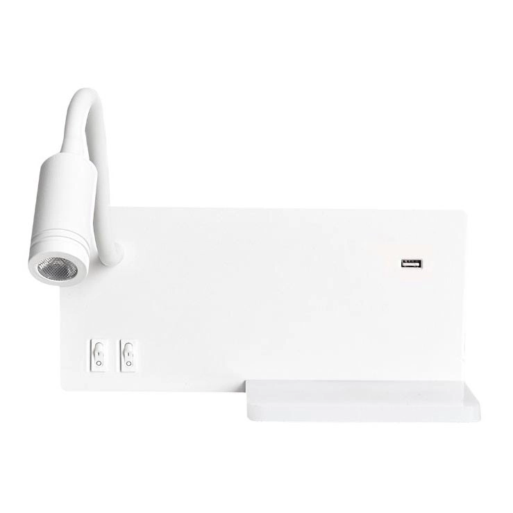 •  Η επιφάνεια στην οποία είναι τοποθετημένο το επιτοίχιο φωτιστικό διαθέτει επίσης μια πρακτική θύρα USB με ράφι, δύο διακόπτες που μπορούν να χρησιμοποιηθούν για τη φόρτιση smartphone και άλλων ηλεκτρονικών συσκευών.