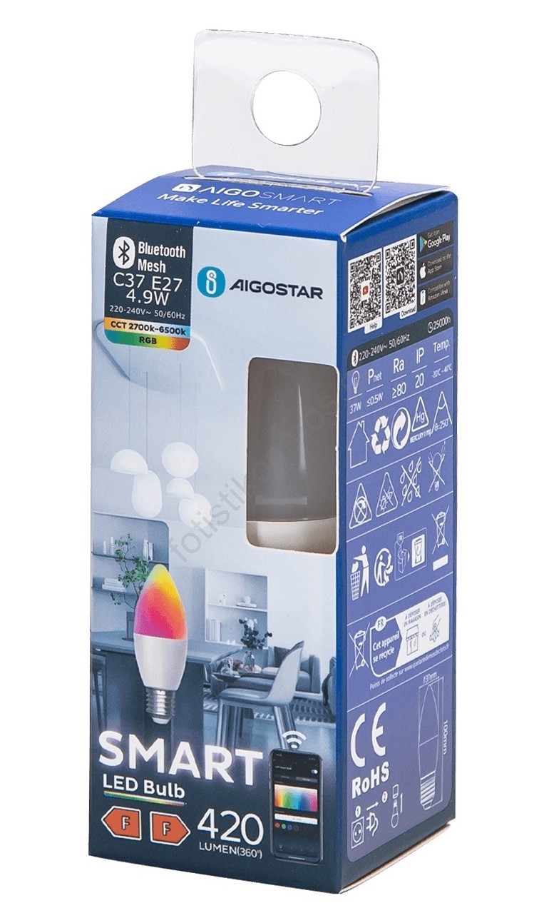 LED RGBW Λάμπα C37 E27/4,9W/230V 2700-6500K - Aigostar | Fotisti kosmos