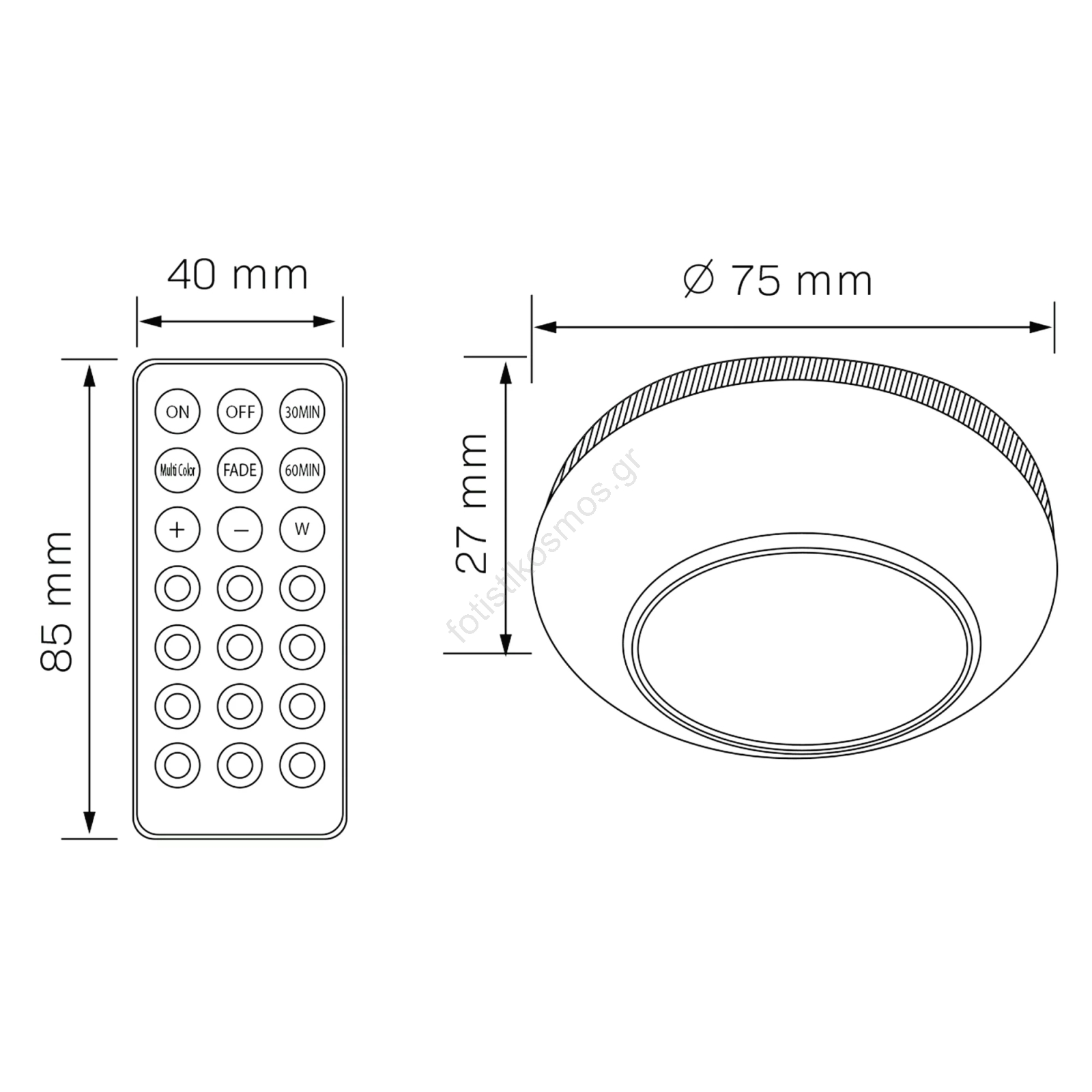 Η εμφάνιση και οι λειτουργίες του τηλεχειριστηρίου ενδέχεται να διαφέρουν ανάλογα με την παρτίδα του φωτιστικού, επειδή ο κατασκευαστής προσπαθεί συνεχώς να το εξελίσσει.