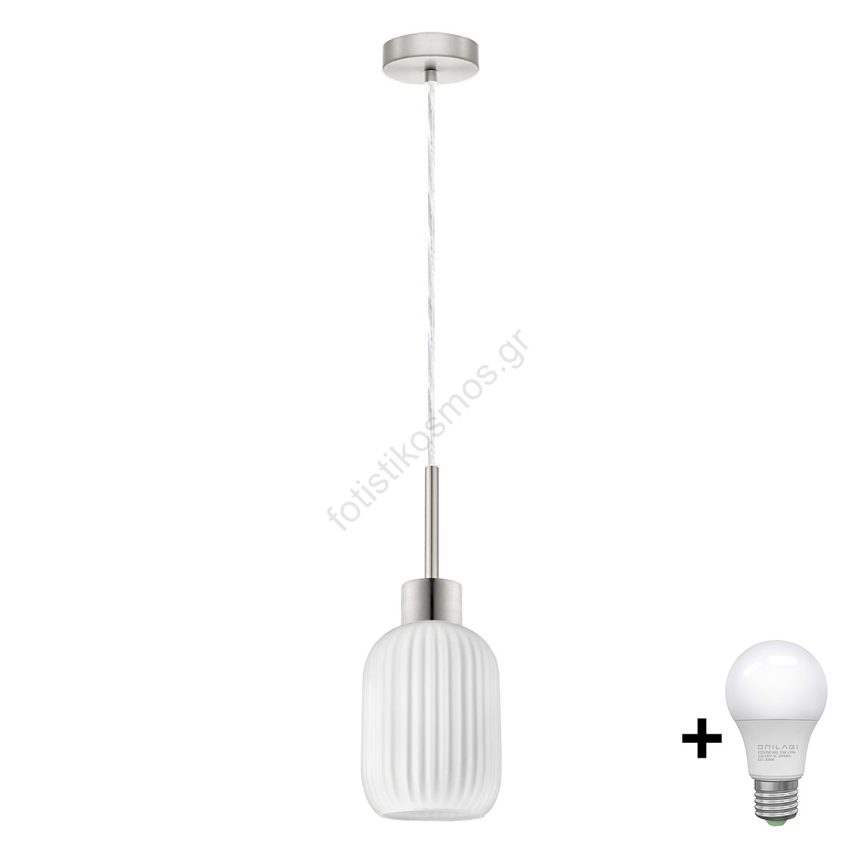 • LED κρεμαστό φωτιστικό HARMA με καλώδιο 1xE27/60W/230V, διάμ. 14 cm, ματ χρώμιο/λευκό