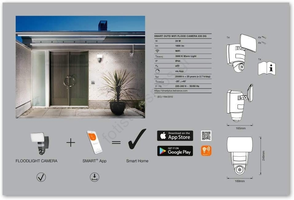 Ledvance - LED Φωτιστικό σποτ με αισθητήρα και κάμερα παρακολούθησης SMART+ LED/24W/230V IP44 Wi-Fi