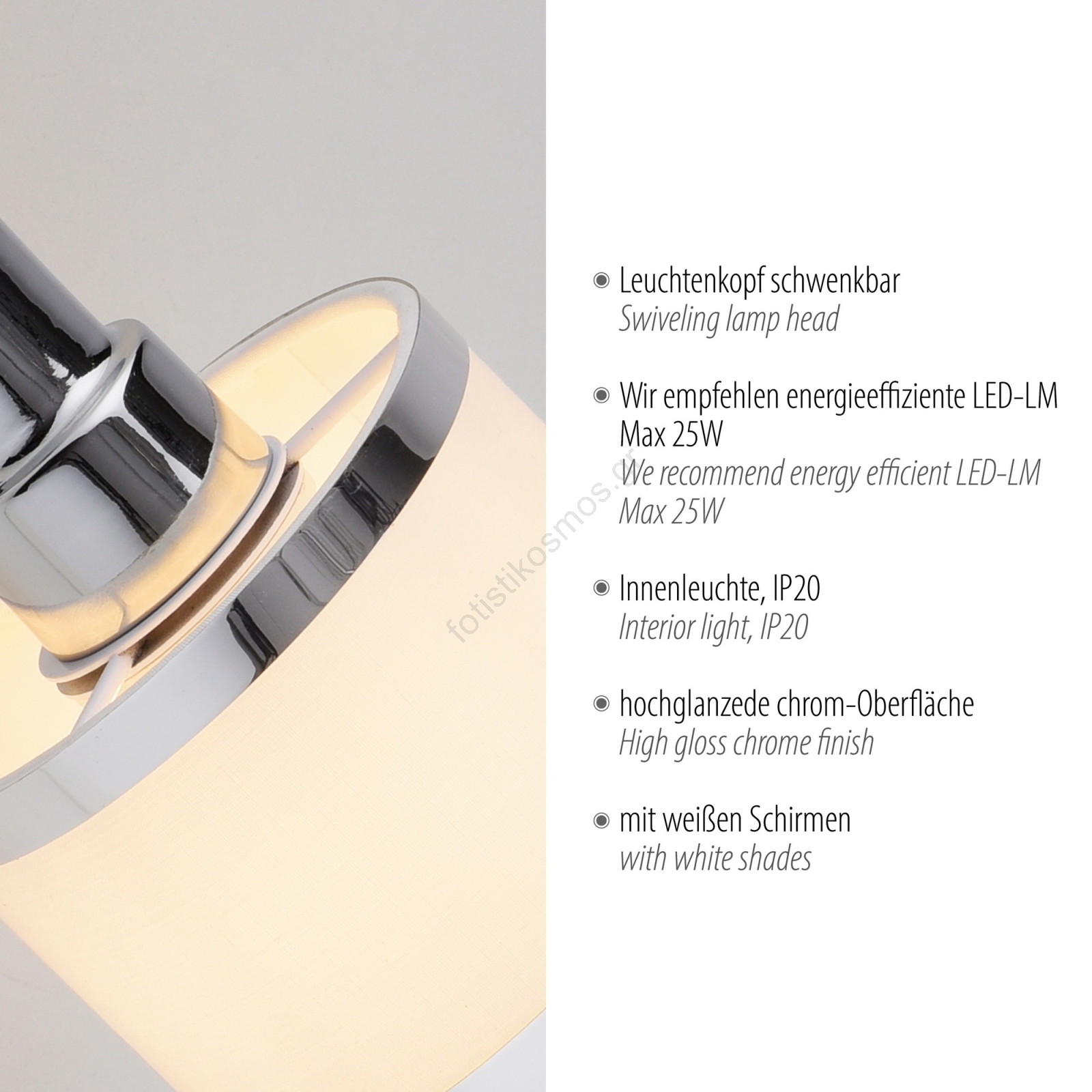 Leuchten Direkt 15371-17 - Σποτ τοίχου ACCOR 1xE14/25W/230V χαρακτηρίζεται από ωραίο και λειτουργικό design.  Μια λάμπα με ντουί E14 είναι κατάλληλη για το φωτιστικό. Εδώ, μπορείτε να αγοράσετε και άλλους λαμπτήρες σε συμφέρουσες τιμές. Θα αποκτήσετε μια εντυπωσιακή προσθήκη στο σπίτι σας.