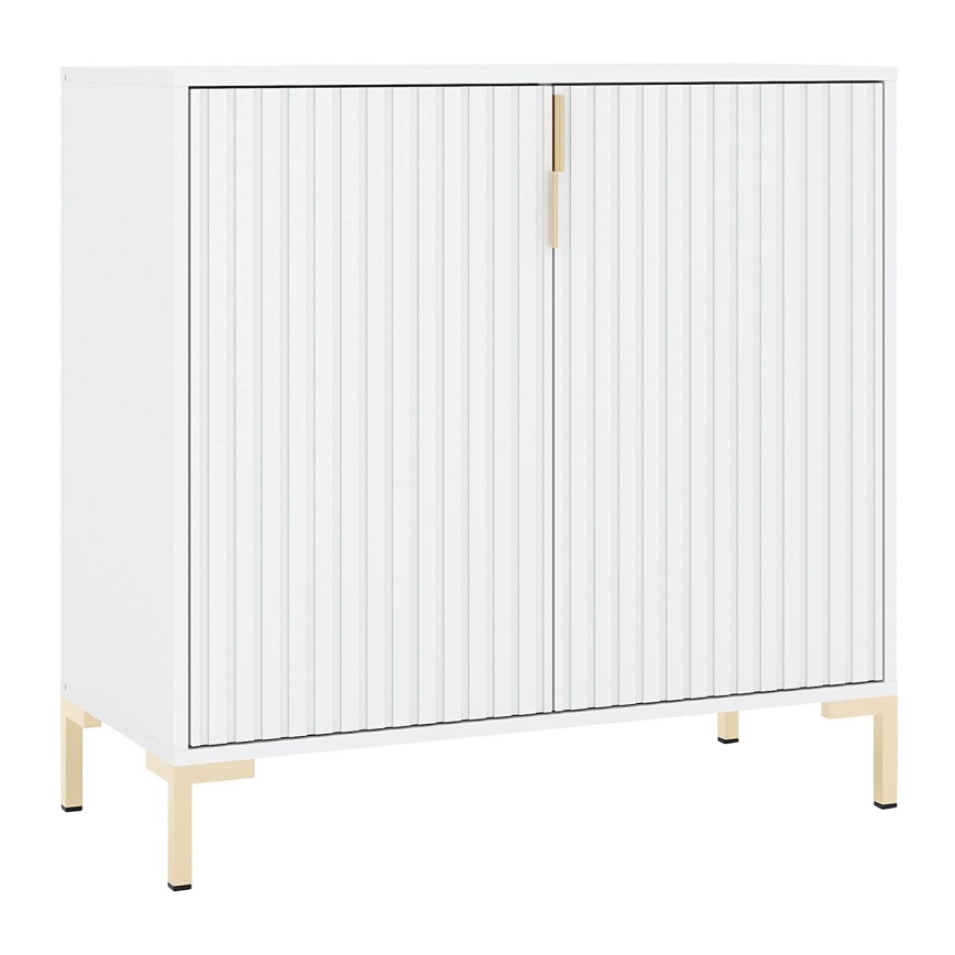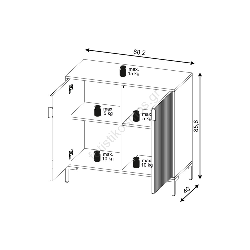 • Διαθέτει τέσσερα ράφια και δύο πόρτες με κάθετο ραβδωτό μοτίβο.