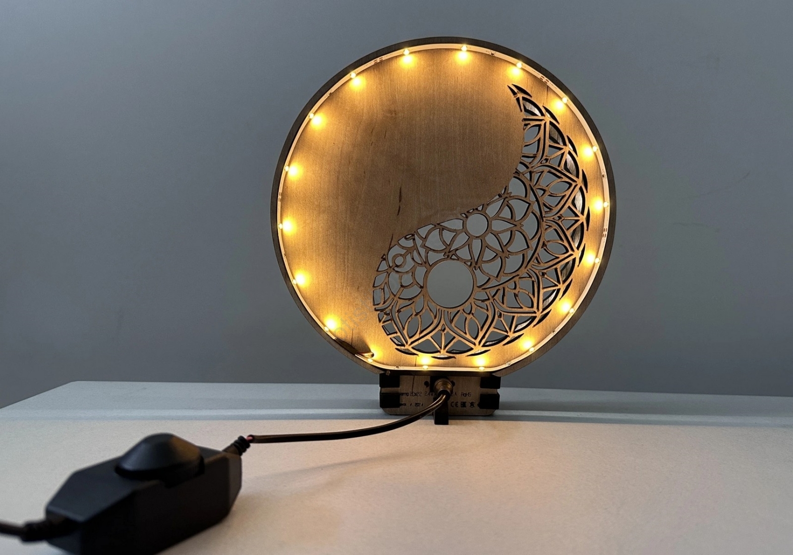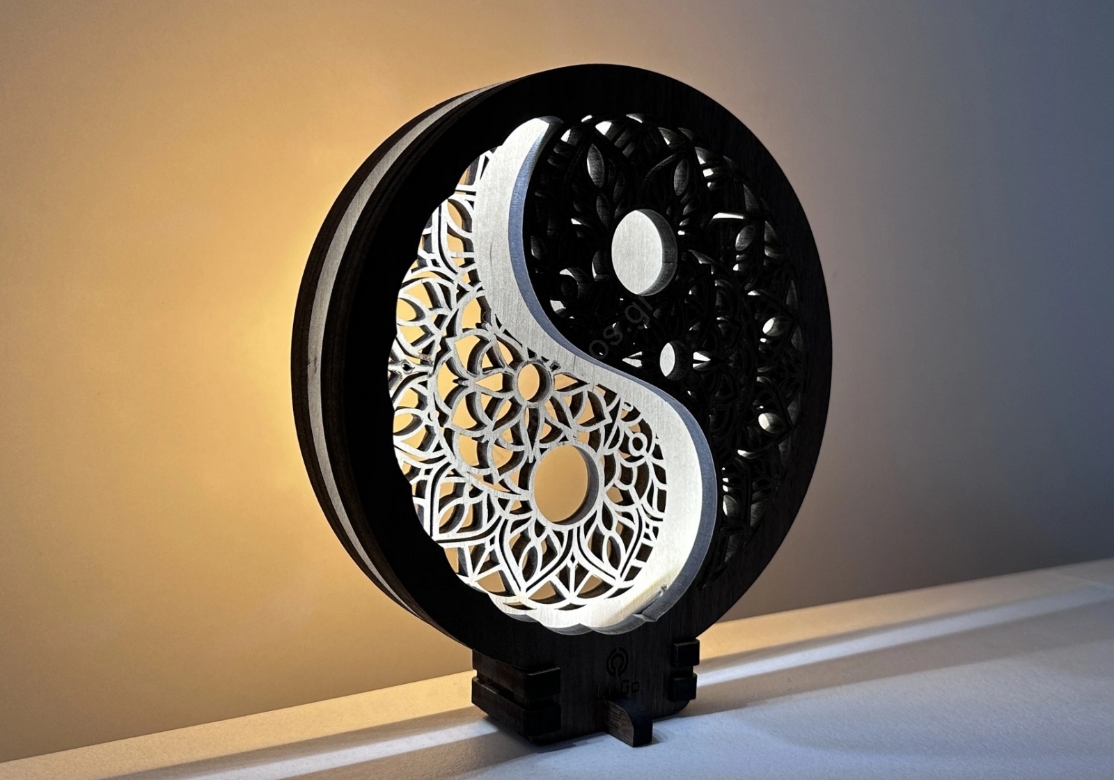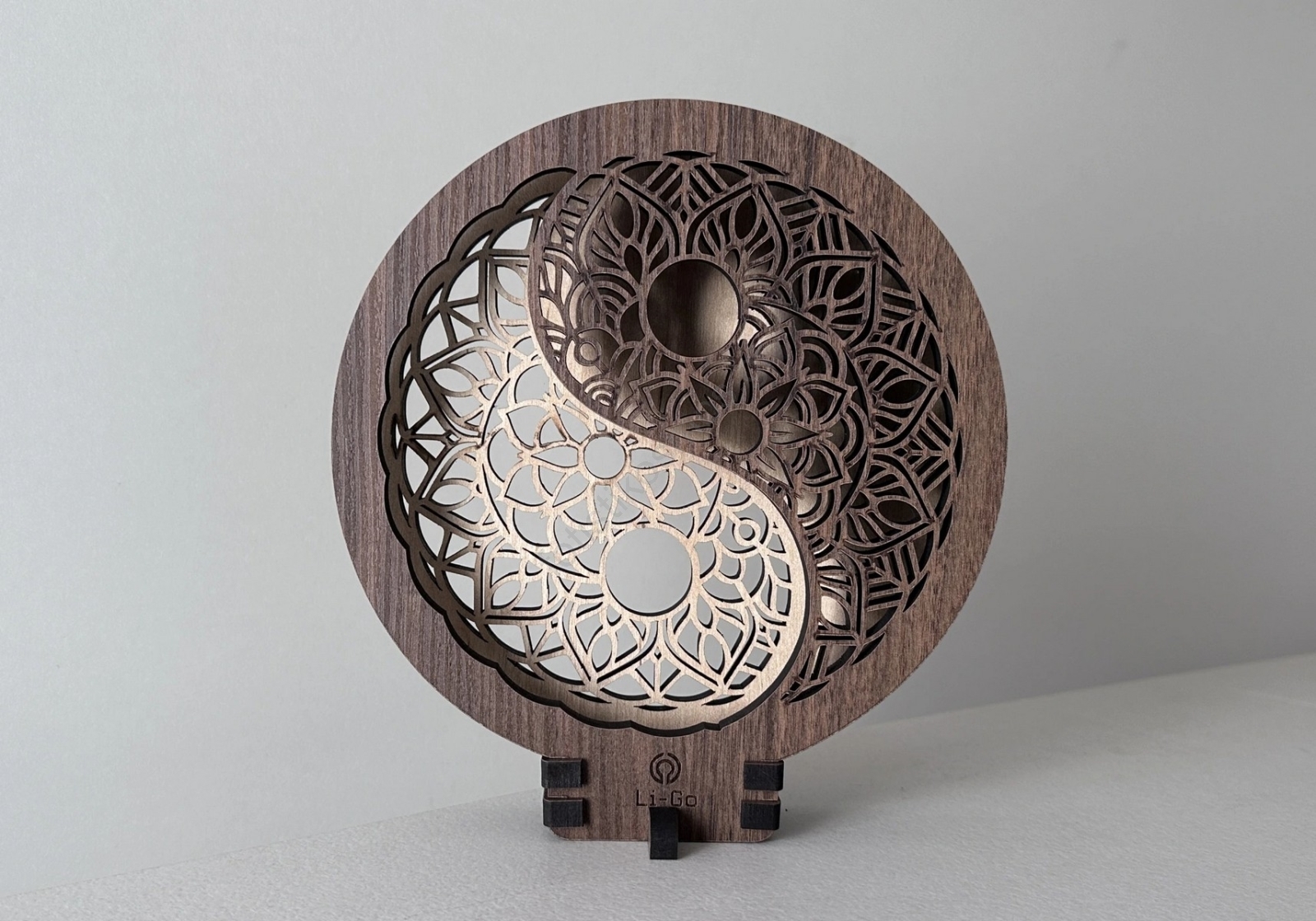 Li-Go 23607/O - Ρυθμιζόμενο επιτραπέζιο διακοσμητικό φωτιστικό LED/12W/230V, 20x22 cm, φινίρισμα καρυδιάς, Γιν-Γιανγκ