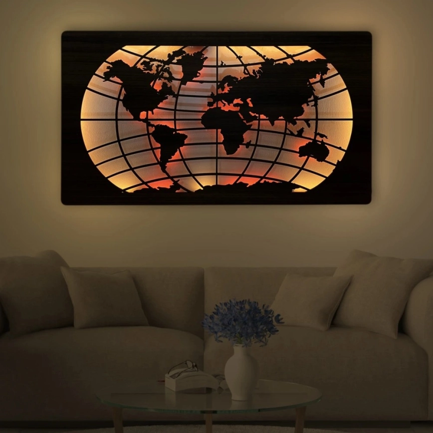 • Διακοσμητικό φωτιστικό LED με εικόνα χάρτη του κόσμου.
