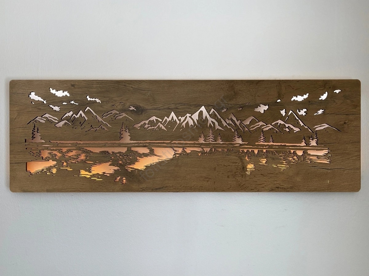 Li-Go 4778/A/4 - LED Ρυθμιζόμενο επιτοίχιο διακοσμητικό φωτιστικό LED/10W/5V 30000 mAh 120x40 cm δρυς/Λίμνη