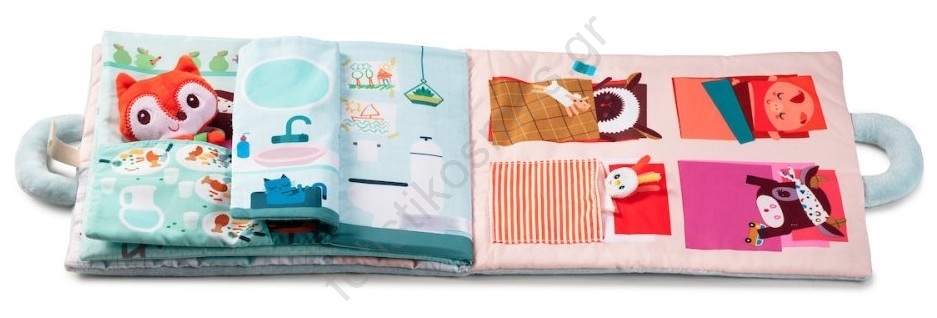 • Όμορφο υφασμάτινο βιβλίο γεμάτο πολύχρωμες εικόνες και διαδραστικές δραστηριότητες.