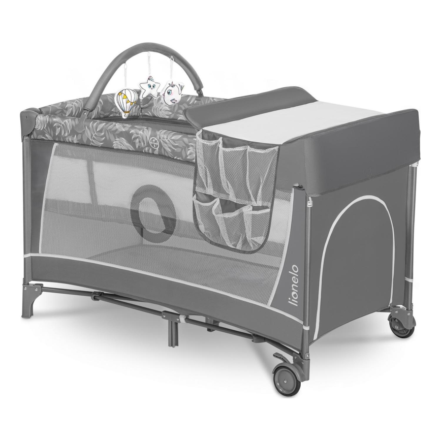 Lionelo - Ταξιδιωτικό παρκοκρέβατο FLOWER Grey Stone