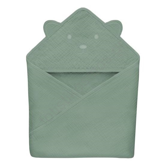 Lionelo - Παιδική πετσέτα με κουκούλα από μουσελίνα, χρώμα Πράσινο του δάσους | Fotisti kosmos