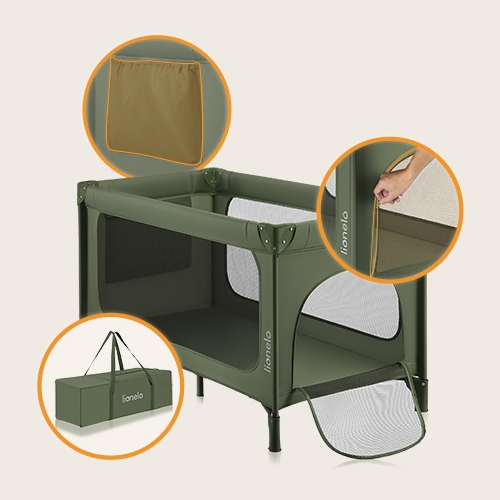 Lionelo - Ταξιδιωτικό παρκοκρέβατο JASMIN EASY FOLD, απόχρωση ελιάς | Fotisti kosmos