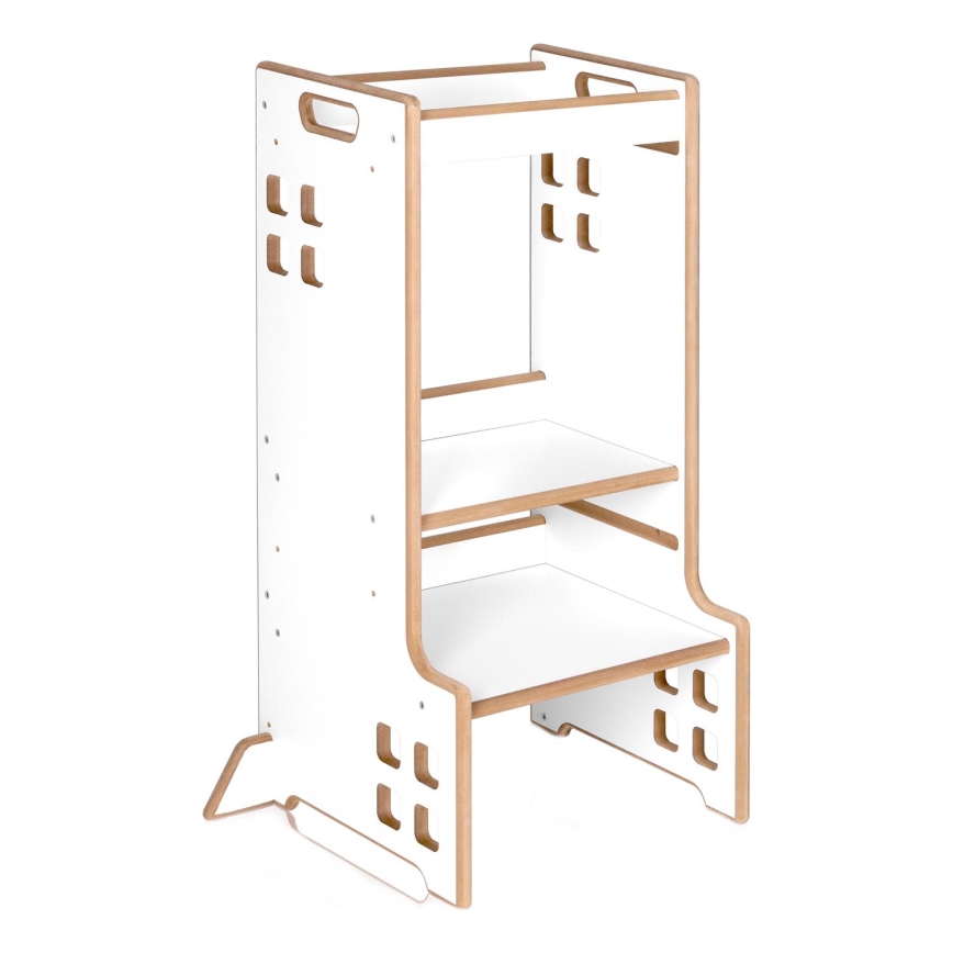 • Ο εκπαιδευτικός πύργος είναι ένα πολυλειτουργικό σκαμπό που δίνει στα παιδιά τη δυνατότητα να συμμετέχουν σε διάφορες δημιουργικές δραστηριότητες στον πάγκο της κουζίνας ή στο γραφείο.