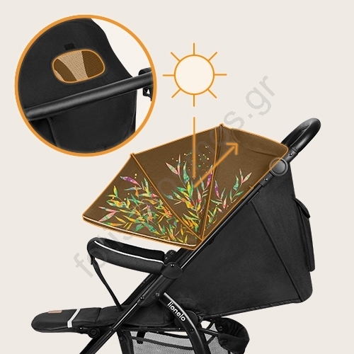 • Εξοπλισμένο με φίλτρο UPF 50+, που προστατεύει αποτελεσματικά το παιδί από την ηλιακή ακτινοβολία και επιτρέπει ήρεμη ξεκούραση.