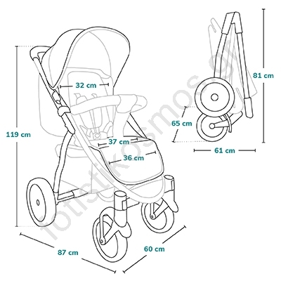 • 9 ρυθμίσεις στη χειρολαβή (81 - 121 cm) για τέλεια προσαρμογή στο ύψος του γονέα.