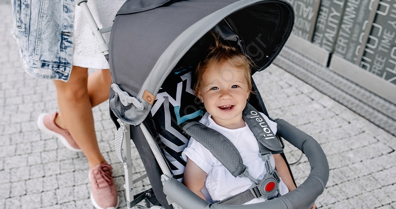 • Οι 5-σημειακοί ιμάντες με άνετα μαξιλαράκια εξασφαλίζουν ασφάλεια κατά τη μετακίνηση.