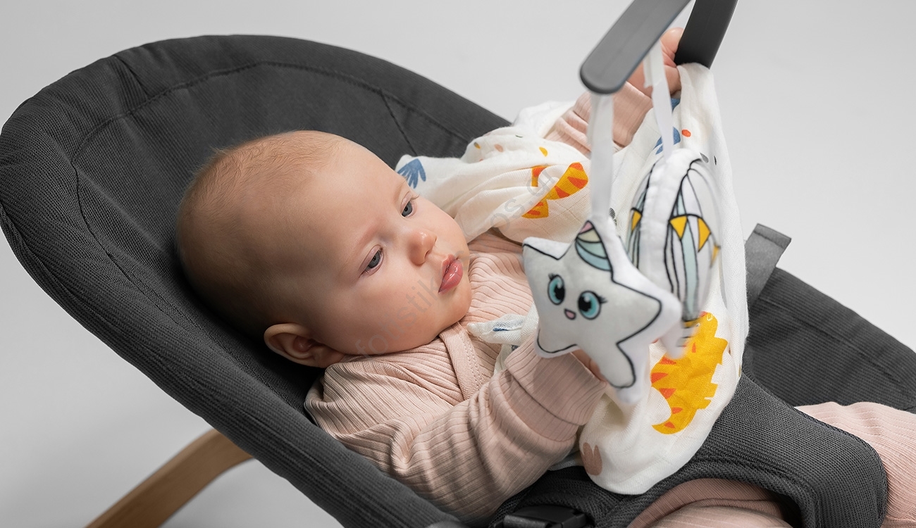 • Αφαιρούμενη μπάρα με δύο παιχνίδια για να τραβούν την προσοχή και να ενισχύουν την κινητική ανάπτυξη.
