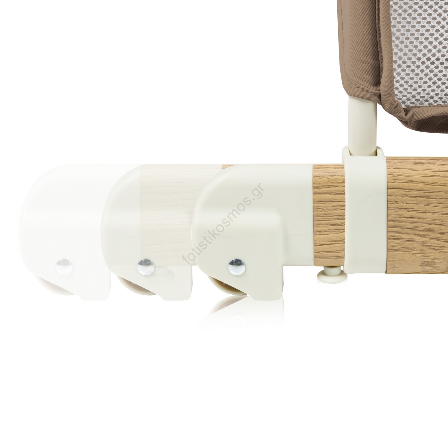 • Προσαρτώμενη κούνια με αφαιρούμενο πλευρικό κάγκελο και ρυθμιζόμενα πόδια για προσαρμογή στο ύψος του γονεϊκού κρεβατιού.