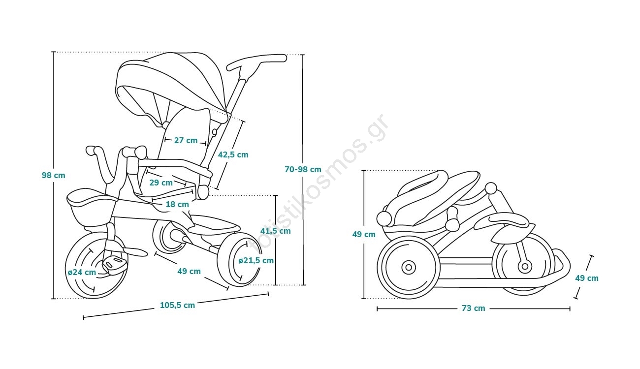 • Η αρθρωτή κατασκευή επιτρέπει στο τρίκυκλο να προσαρμόζεται καθώς το παιδί μεγαλώνει.