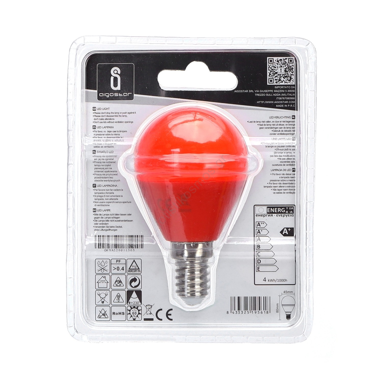 Λάμπα LED G45 E14/4W/230V πορτοκαλί - Aigostar | Fotisti kosmos