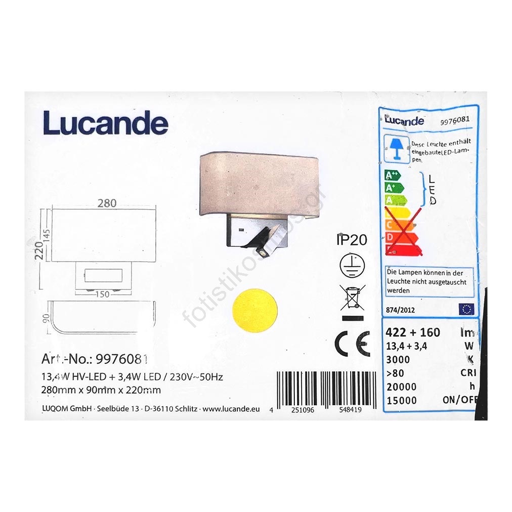 • Το φωτιστικό διαθέτει ενσωματωμένη ενεργειακή αποδοτική LED πηγή φωτός.