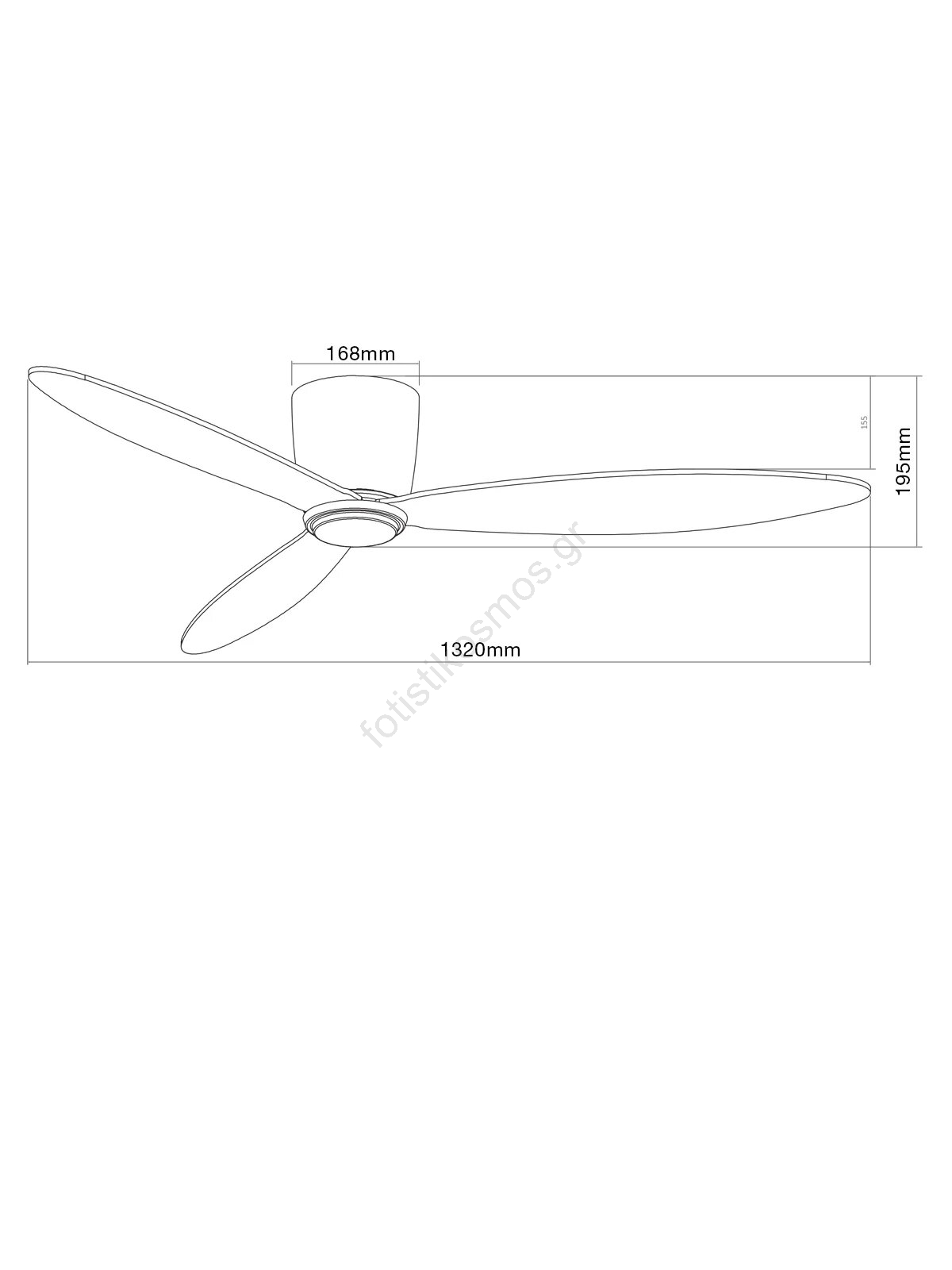 • Τα πτερύγια του ανεμιστήρα είναι κατασκευασμένα από κόντρα πλακέ μαόνι με λευκή επιφανειακή επεξεργασία.