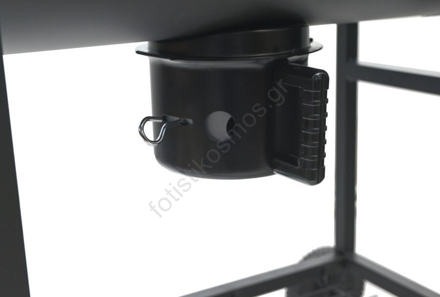 • Το κάτω μέρος της κατασκευής έχει ράφι και δύο τροχούς που εξασφαλίζουν την κινητικότητα της ψησταριάς.