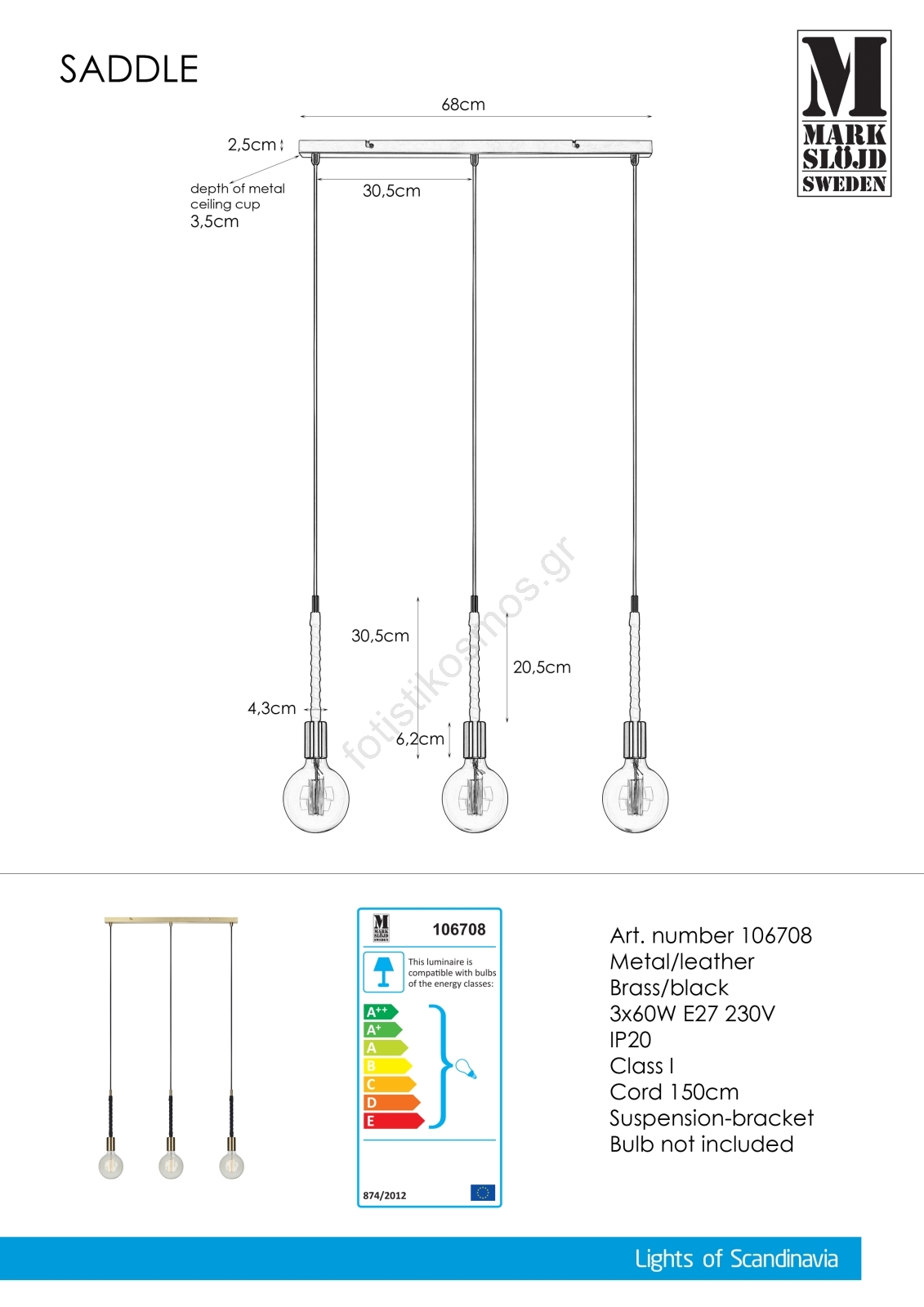 Markslöjd 106708 - Πολύφωτο σε σχοινί SEDLO 3xE27/60W/230V