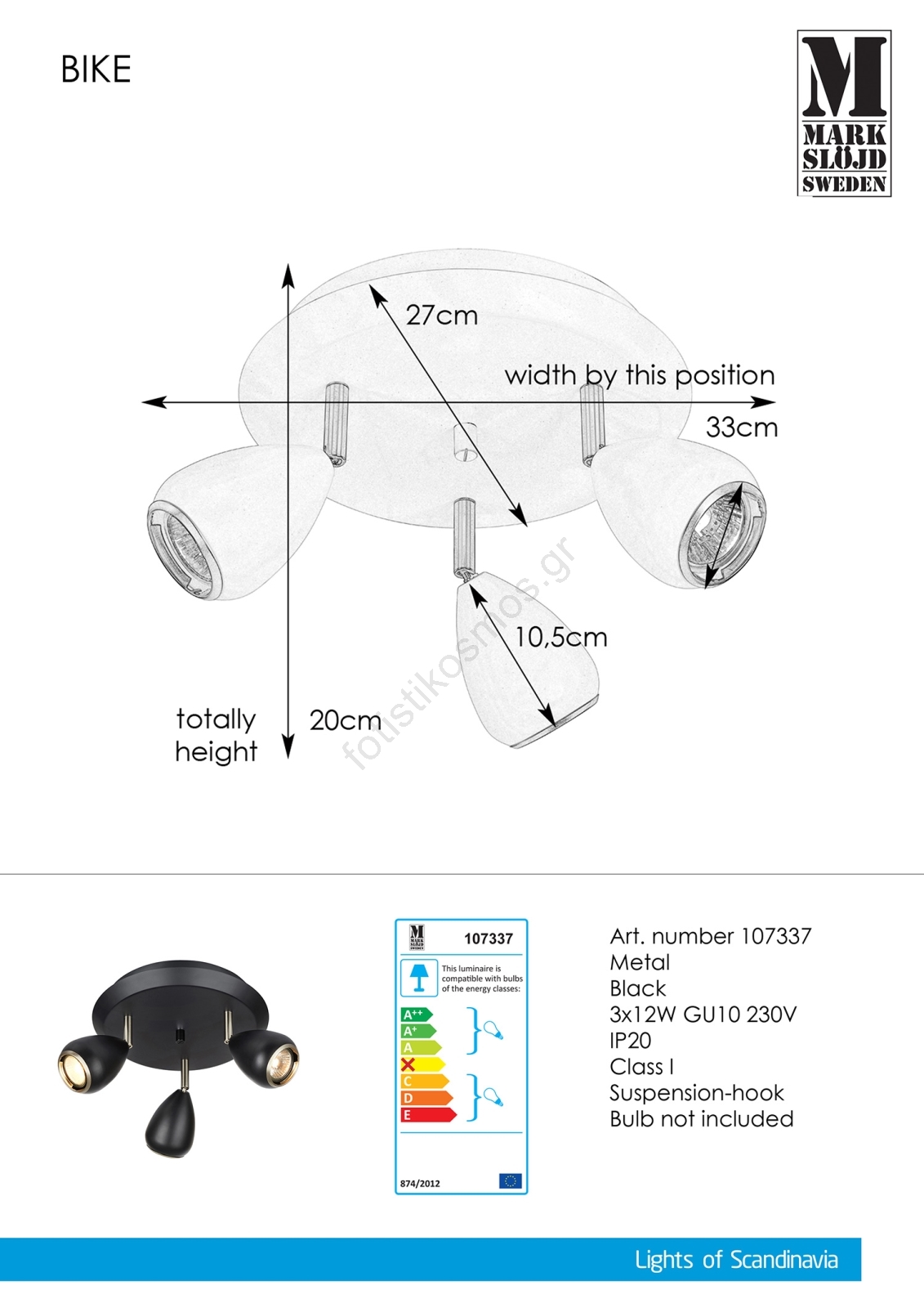 Markslöjd 107337 - Φωτιστικό σποτ BIKE 3xGU10/12W/230V | Fotisti kosmos