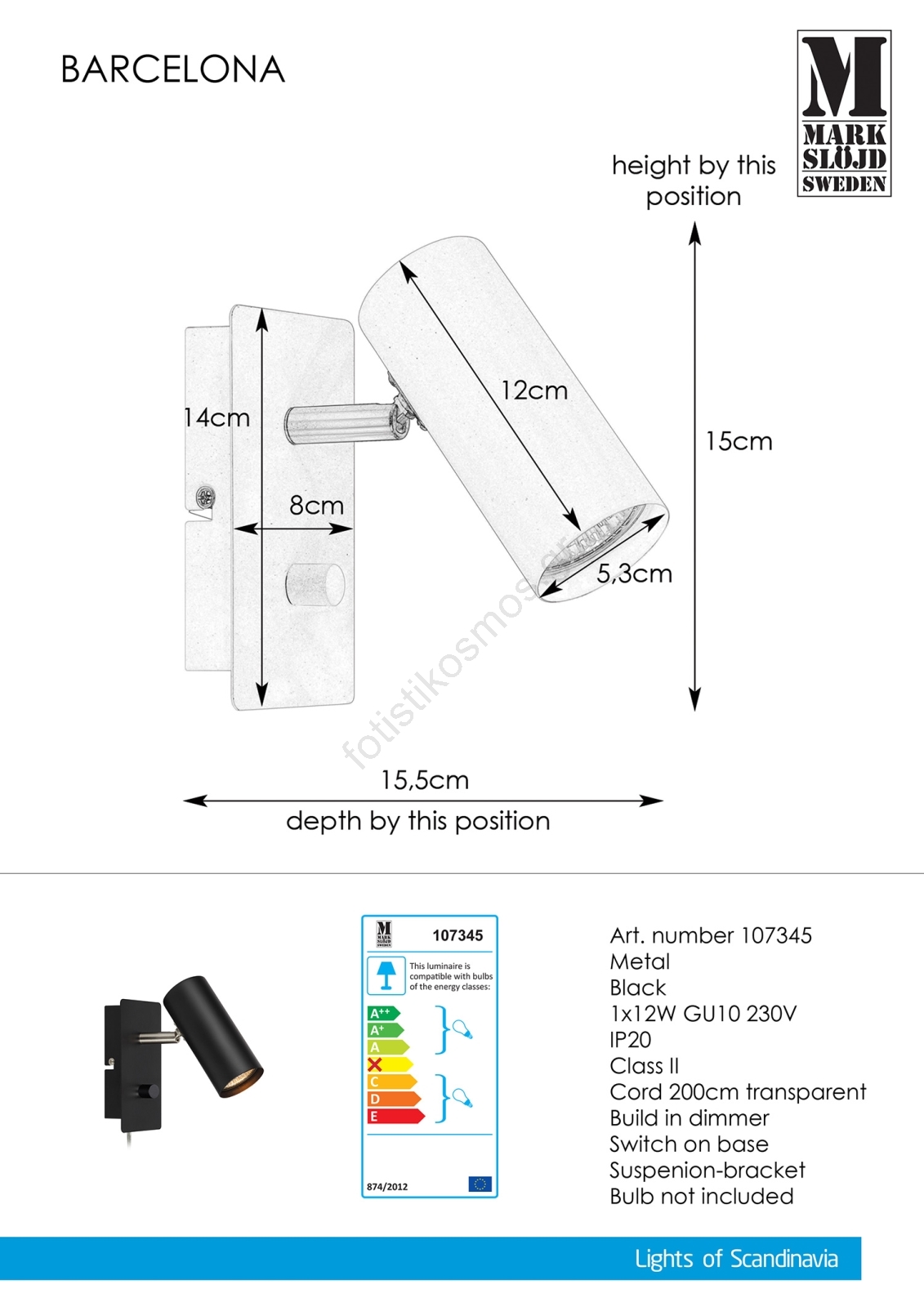 Markslöjd 107345 - Dimmable σποτ τοίχου BARCELONA 1xGU10/12W/230 | Fotisti kosmos