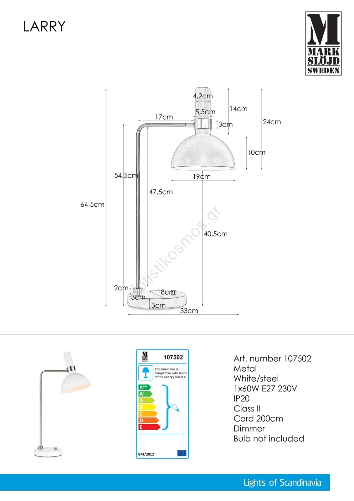 Markslöjd 107502 - Επιτραπέζια λάμπα dimmer LARRY 1xE27/60W/230V | Fotisti kosmos