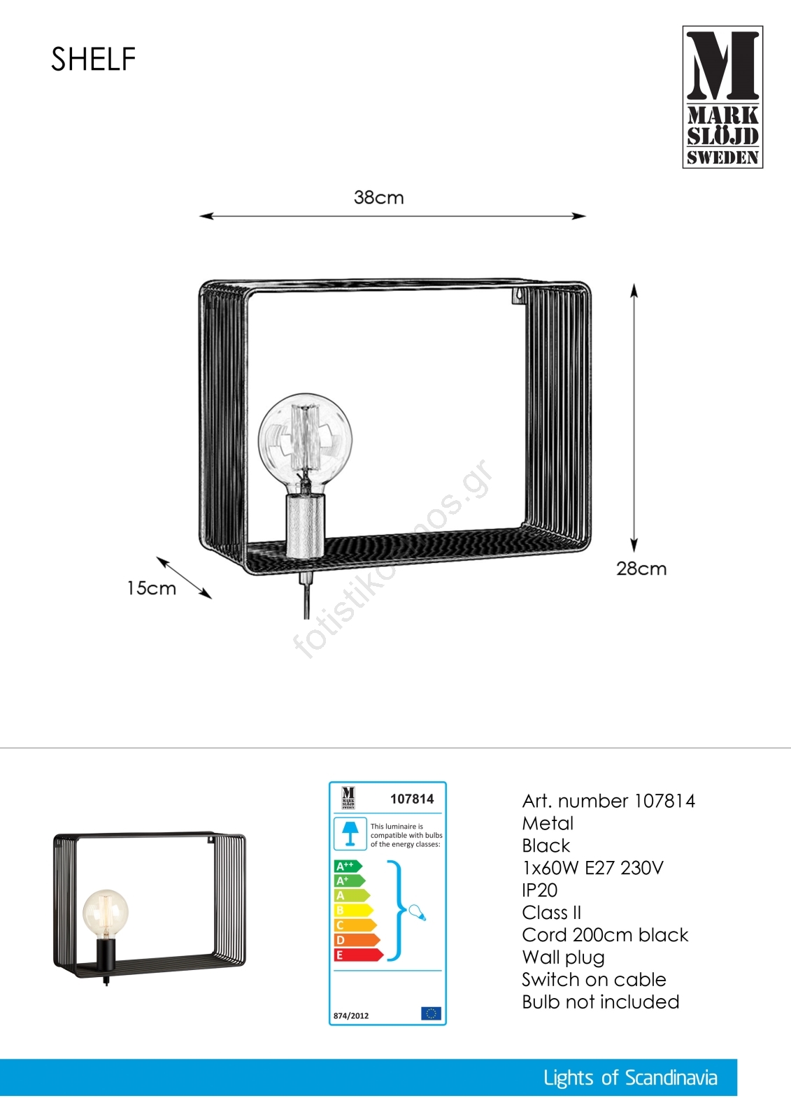 Markslöjd 107814 - Φως τοίχου SHELF 1xE27/60W/230V | Fotisti kosmos