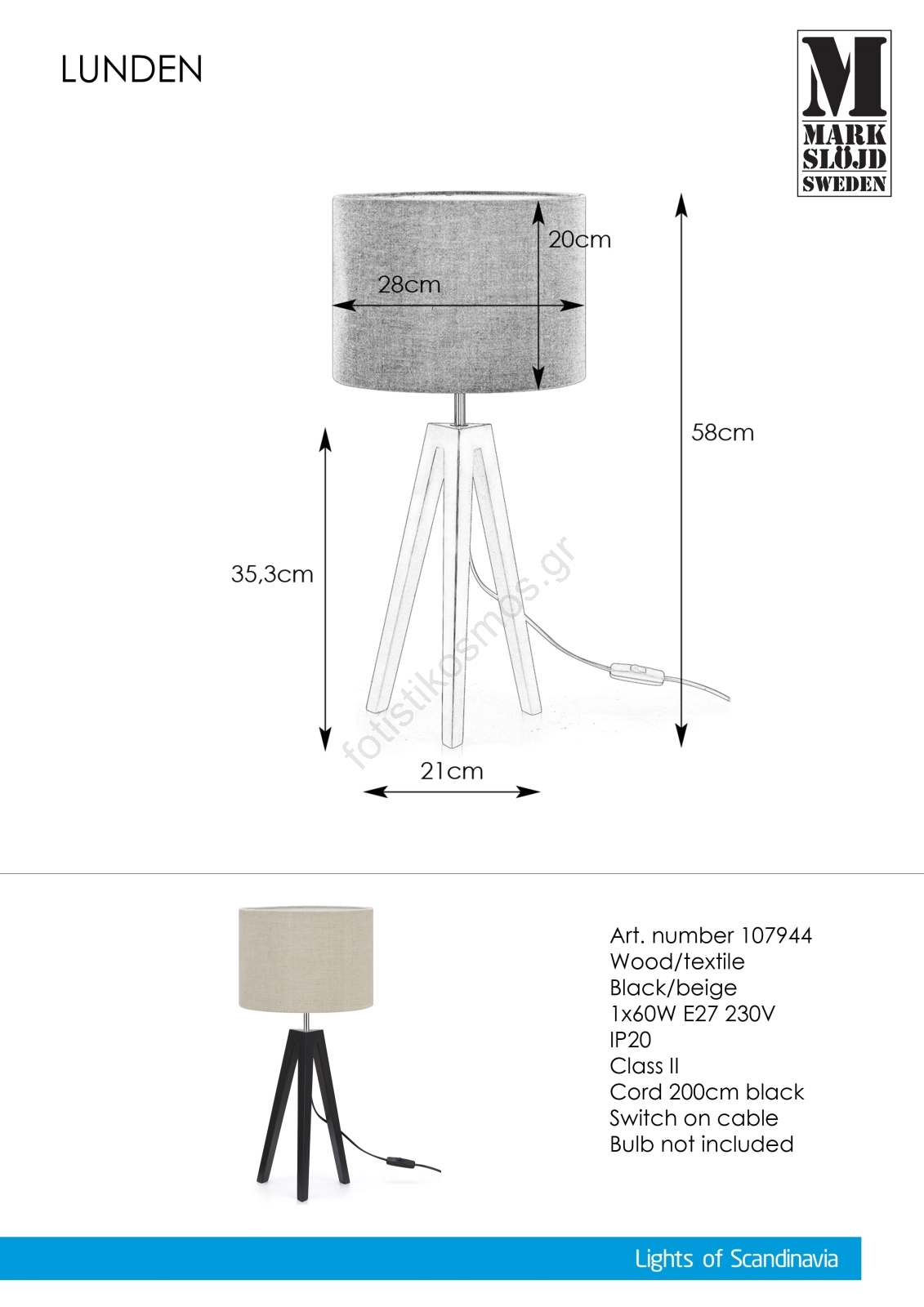 Markslöjd 107944 - Επιτραπέζια λάμπα LUNDEN 1xE27/60W/230V | Fotisti kosmos