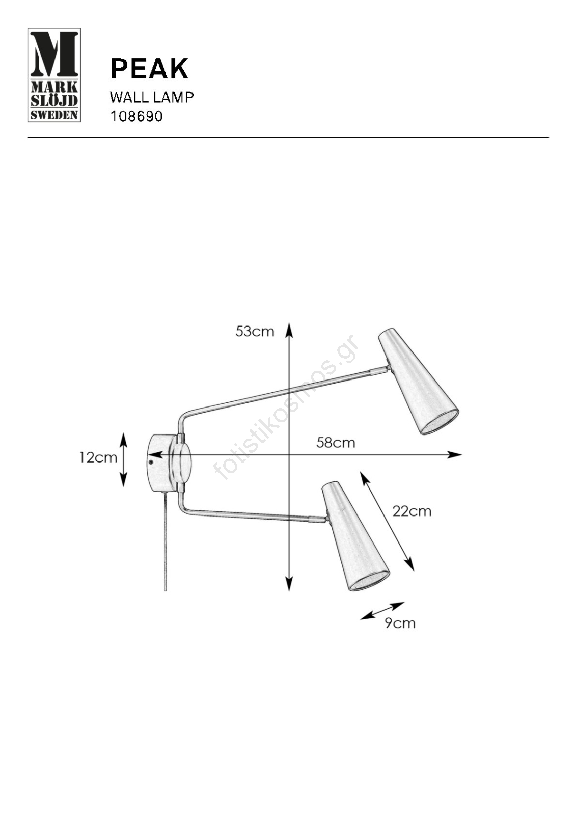 Markslöjd 108690 - Λάμπα τοίχου PEAK 2xE14/40W/230V μαύρο