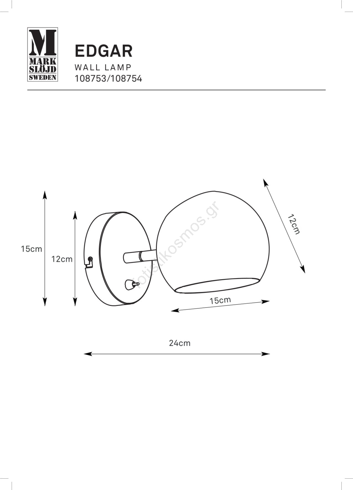 • Markslöjd 108753 - Λάμπα τοίχου EDGAR 1xE14/40W/230V μαύρο