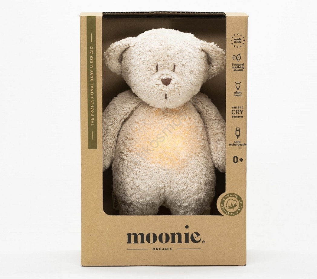 • Το Moonie λούτρινο αρκουδάκι με νυχτερινό φωτισμό και χαλαρωτικούς ήχους βοηθά το μωρό να αποκοιμηθεί πιο εύκολα.