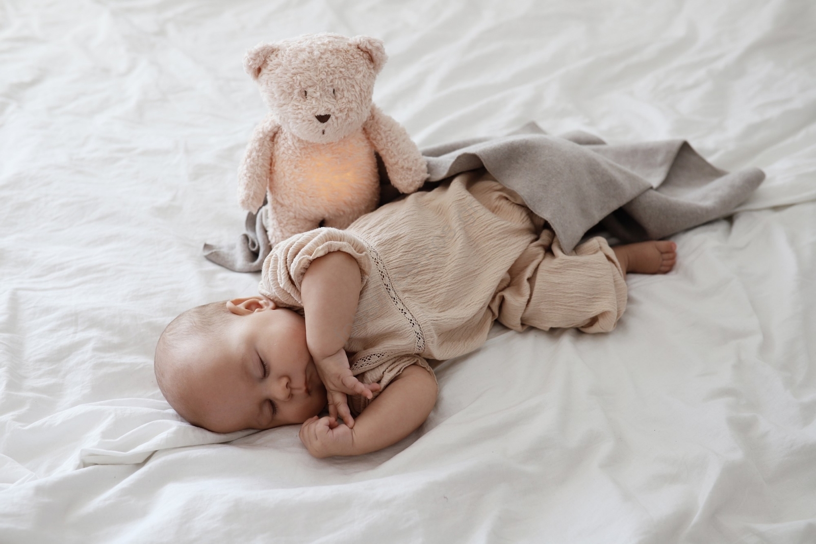 • Moonie -  Λούτρινο αρκουδάκι από οργανικό βαμβάκι με ήχο και φως caramel natur