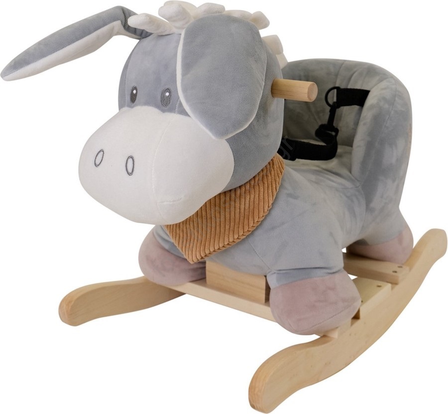• Όμορφος μαλακός κουνιστός γαϊδαράκος με ξύλινη βάση και χειρολαβές, ένα παιχνίδι που προσκαλεί σε κούνημα και χάδι.