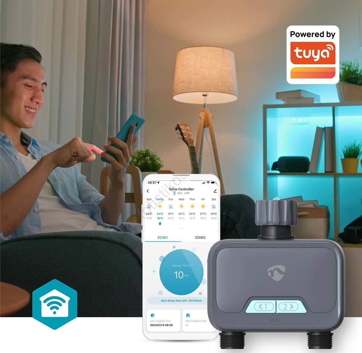 • Ιδανικός για τον έλεγχο και την παρακολούθηση του ποτίσματος σε δύο διαφορετικές ζώνες του κήπου σας.