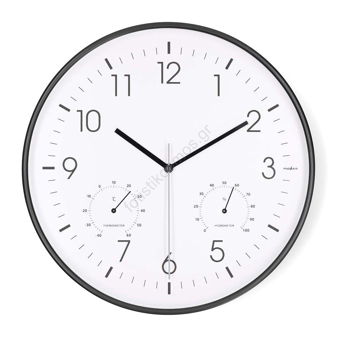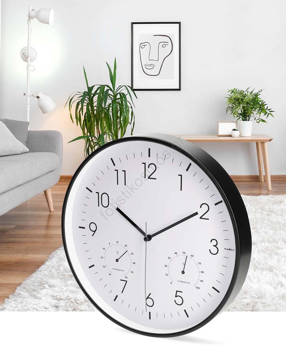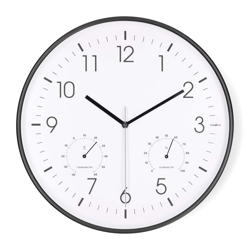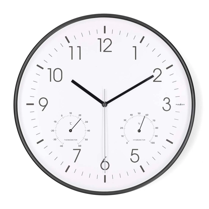 Ρολόι τοίχου με θερμόμετρο και υγρόμετρο, διάμετρος 30,5 εκ., 1xAA, μαύρο