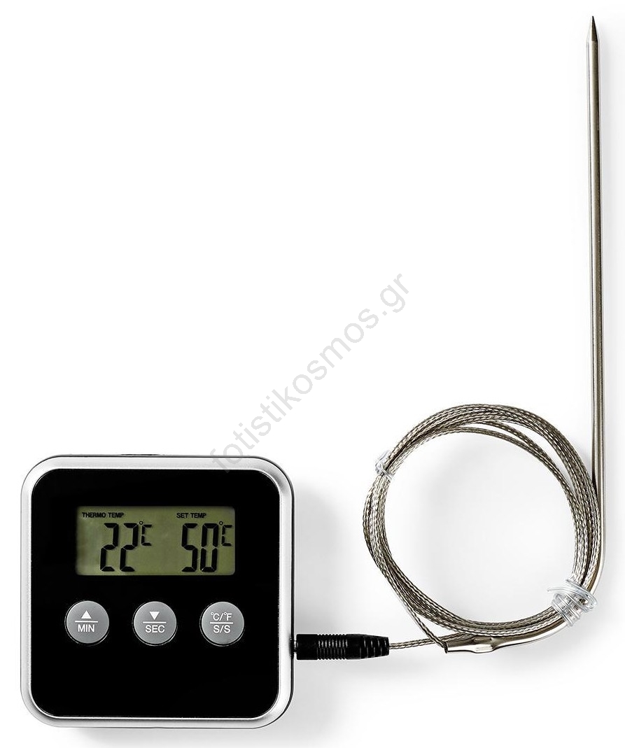 Nedis KATH105BK - Θερμόμετρο κρέατος με οθόνη και χρονοδιακόπτη 0-250 °C 1xAAA | Fotisti kosmos