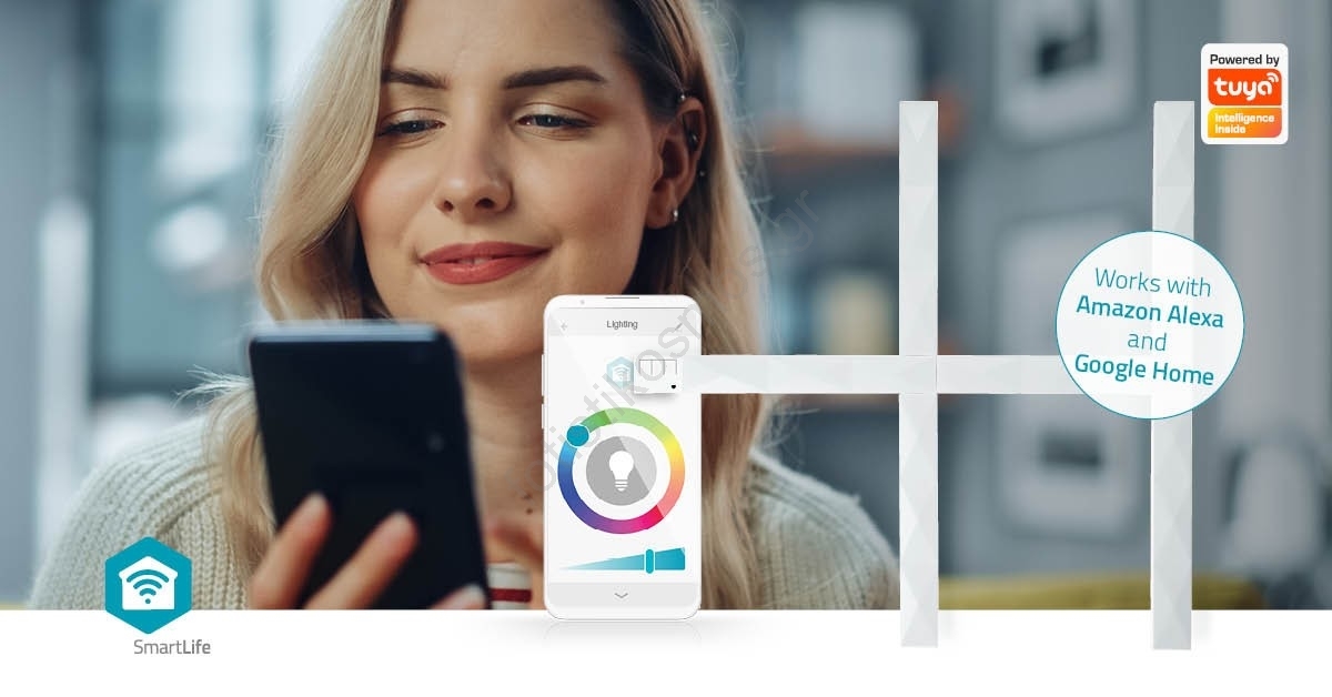 • Με την εφαρμογή SmartLife (συμβατή με iOS και Android) και μέσω Wi-Fi, μπορείτε να ρυθμίσετε τα επίπεδα φωτεινότητας με μερικά απλά πατήματα στο τηλέφωνο ή το tablet σας.